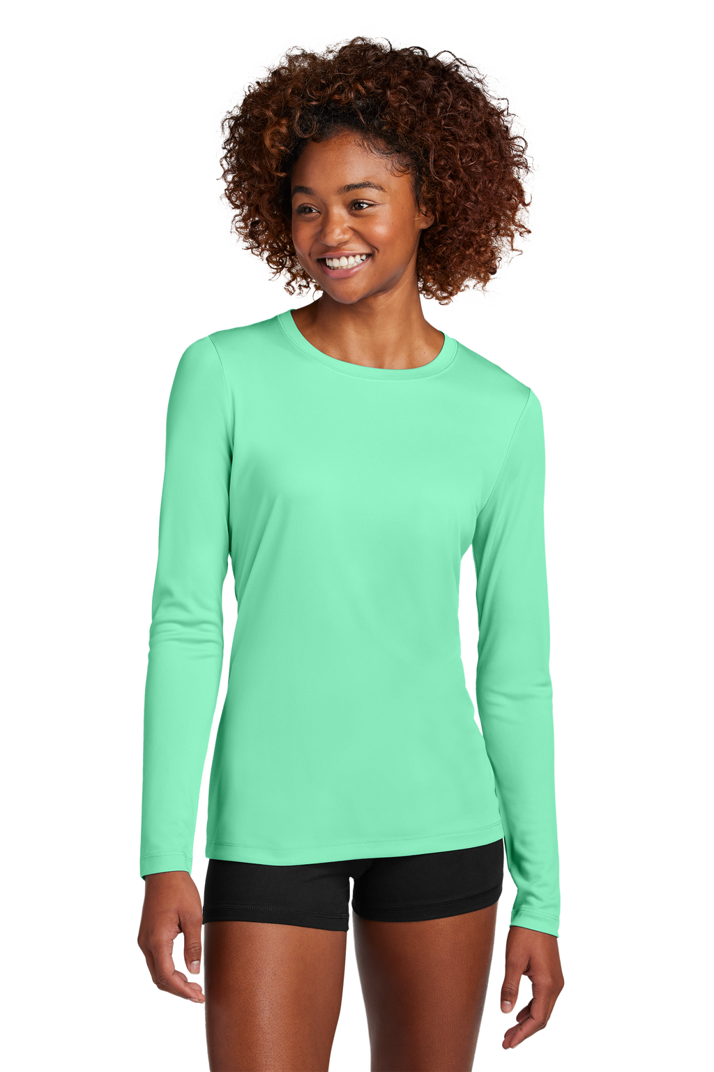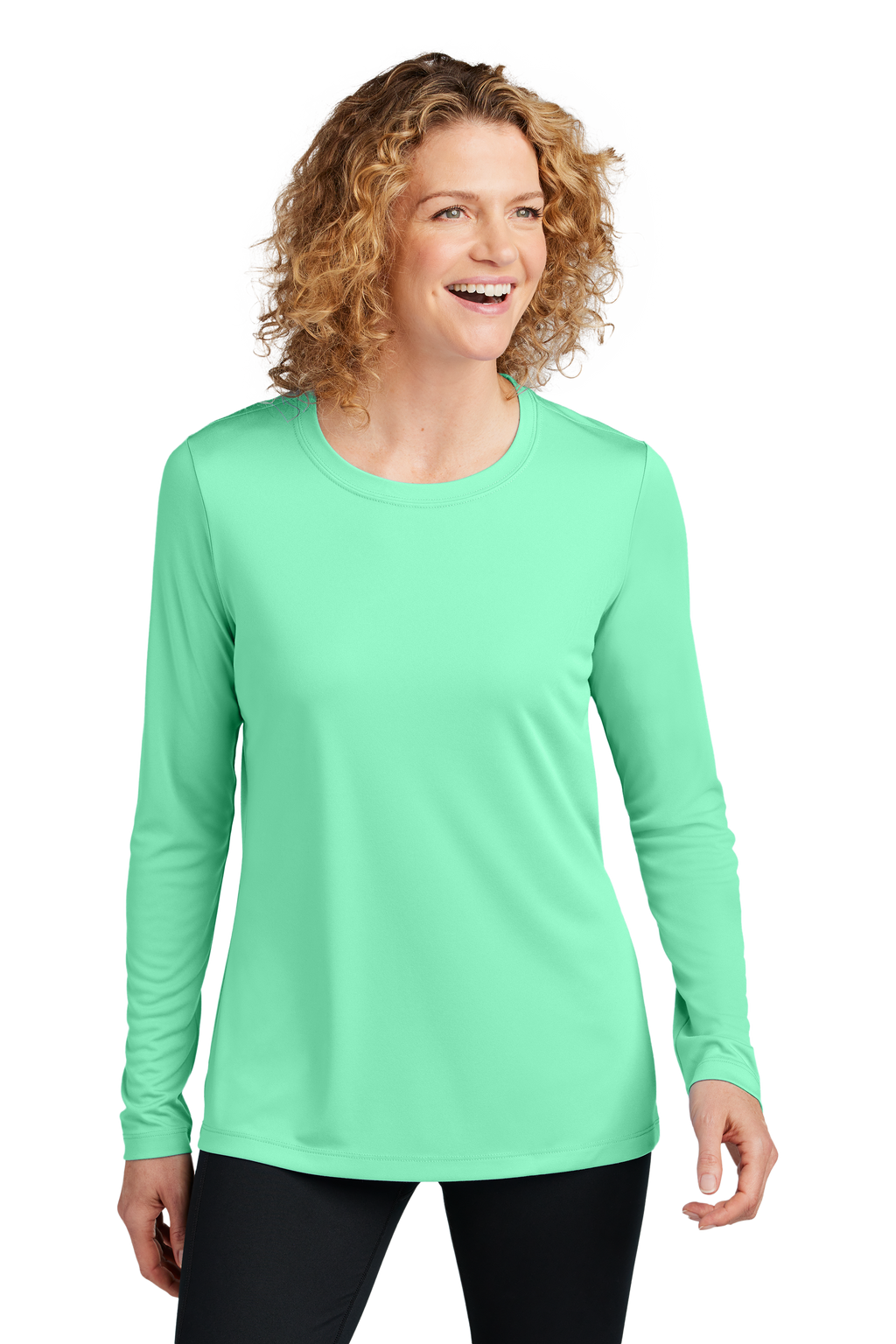 Stay protected and comfortable in style with our Women's Posi-UV® Pro Long Sleeve. This lightweight tee combines advanced moisture-wicking technology with powerful UV defense, keeping you dry and shielded from the sun's rays. The soft, matte finish feels amazing against your skin, while our signature PosiCharge color-locking technology ensures your favorite hue stays vibrant wash after wash. Perfect for outdoor adventures or everyday wear.